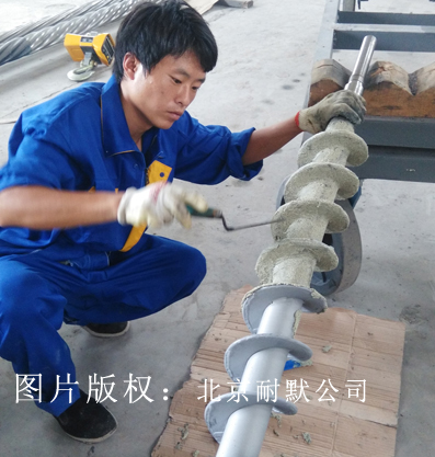 圖(3)小顆粒耐磨膠采用手工涂抹金屬表面,北京耐默公司施工人員經驗豐富,可以涂抹各種復雜異形件